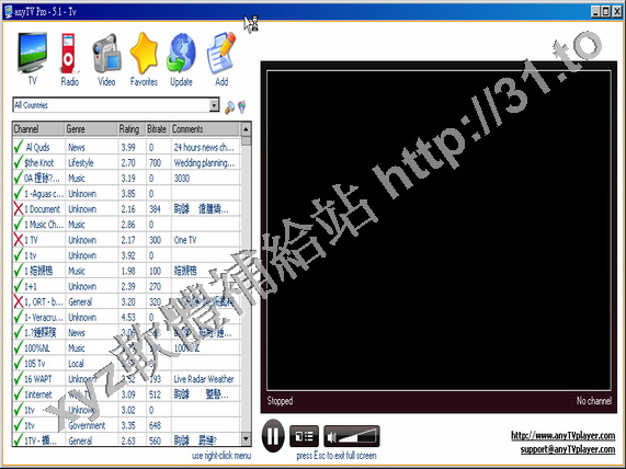 Any TV Pro v5.1.0.0 英文正式版(一款擁有海量節目的網路電視軟體)