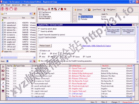 MFR 是一個功能非常強大的文件改名和ID3 TAG 修改軟體,主要功能: