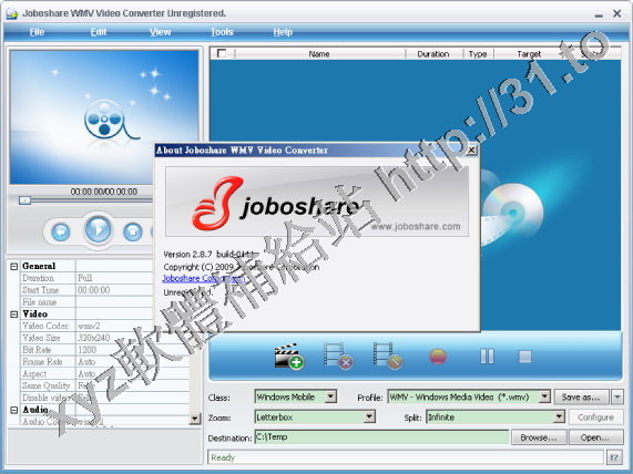 • Joboshare WMV Video Converter v2.9.7.0607 英文正式版(WMV視頻編碼軟體)